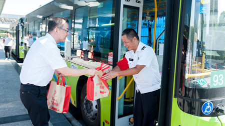 王春勤一行來到高鐵嘉興南站公交樞紐站后,與高溫下奮戰在一線的公交職工一一握手,并仔細查看和詢問了公交一線員工的工作情況,并送上了防暑用品和慰問金。王春勤感謝大家為禾城百姓提供安全、便捷的公交出行服務所作出的貢獻,還囑咐大家在高溫天要注意防暑降溫,保重身體。